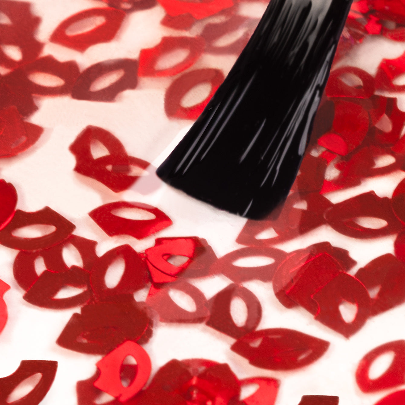 Don't Talk. Just Kiss. is a transparent hybrid varnish with decorations in the form of red lips, embedded in the middle . Bring a message of love to the world, presenting an original manicure! The hybrid has transparent coverage and a beautiful finish with gloss . It will become an attractive addition to any situation that you want to make unique. The product is also a perfect gift for loved ones! Its medium-thick consistency guarantees easy application. Don't worry - beginners will also cope! With the varnish, your styling will last up to 21 days .